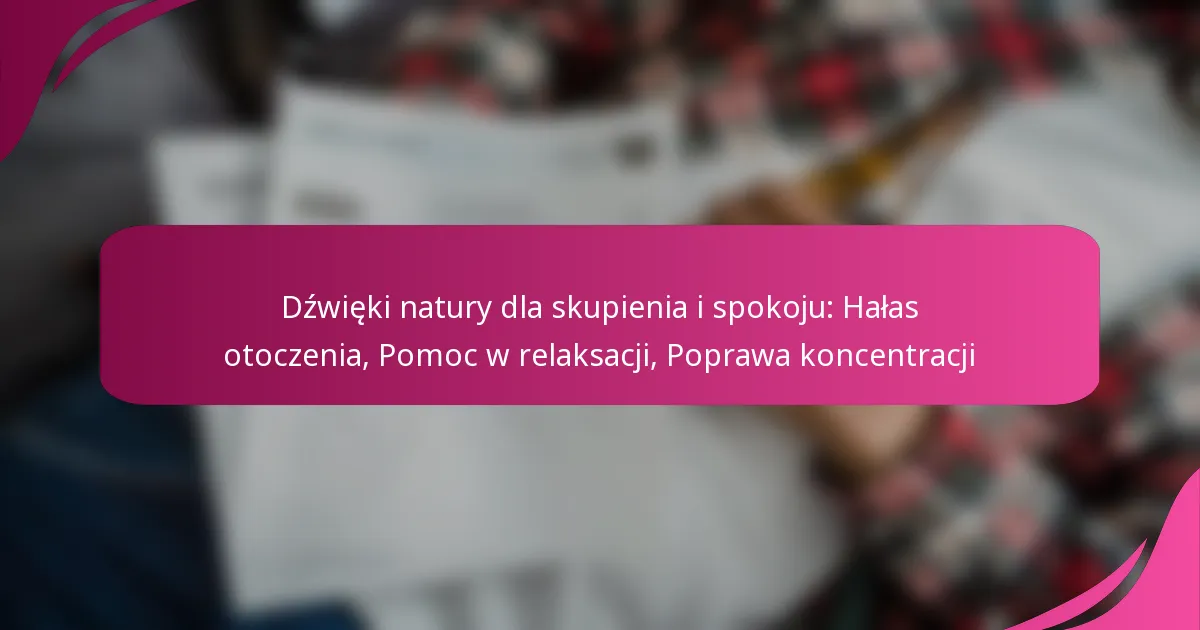 Dźwięki natury, takie jak delikatny deszcz, fale oceaniczne czy kojący śpiew ptaków, tworzą tło dźwiękowe, które może poprawić koncentrację i wprowadzić w stan spokoju. Wprowadzając te naturalne pejza...