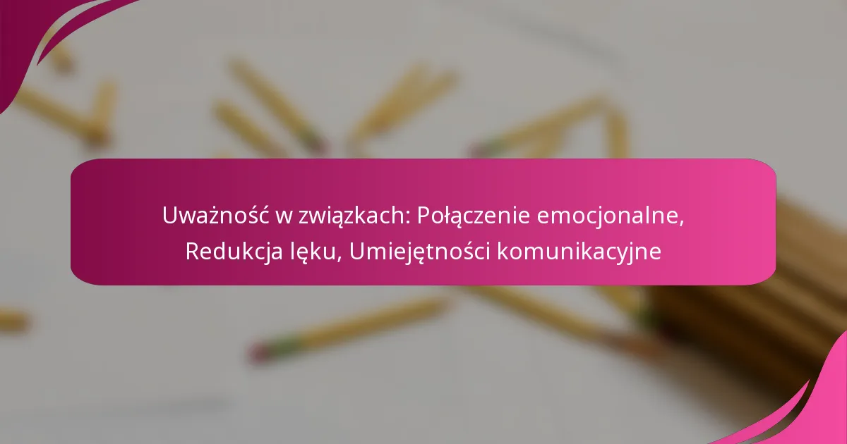 Uważność odgrywa kluczową rolę w poprawie relacji, pogłębiając emocjonalne połączenia i redukując lęk. Poprzez rozwijanie świadomości i obecności, partnerzy mogą angażować się bardziej w pełni, co pro...